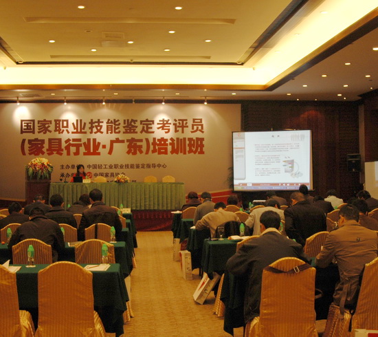 2010年12月17日國家職業(yè)技能鑒定考評(píng)員(家具行業(yè)·廣東)培訓(xùn)班在廣東東莞厚街嘉華大酒店順利召開,來自廣東、江蘇各地家具協(xié)會(huì)、家具企業(yè)、家具林業(yè)院校共44名學(xué)員參加了此次培訓(xùn)班,特別感謝中國家具協(xié)會(huì)、廣東東莞名家具俱樂部、廣東省家具協(xié)會(huì)和廣州市家具協(xié)會(huì)和江蘇農(nóng)林職業(yè)技術(shù)學(xué)院,廣東順德龍江職業(yè)技術(shù)學(xué)校、廣東順德研發(fā)院、廣東東莞市大嶺山職業(yè)技術(shù)學(xué)校、廣東東莞國際名家具設(shè)計(jì)研發(fā)院、聯(lián)邦家私集團(tuán)、廣東東莞市大嶺山家具協(xié)會(huì)、廣東厚街專業(yè)技術(shù)學(xué)校等10余家家具協(xié)會(huì)和企業(yè)的鼎力支持和大力幫助。