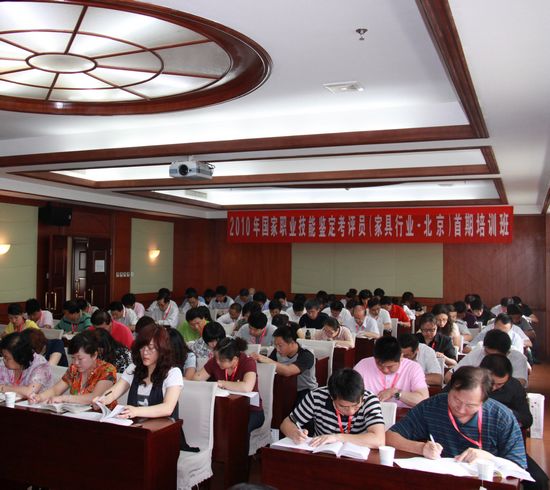 2010年5月28日國家職業(yè)技能鑒定考評員(家具行業(yè)•北京)首期培訓(xùn)班在北京中國家具行業(yè)培訓(xùn)中心勝利召開,來自全國各地家具協(xié)會、家具企業(yè)、家具林業(yè)院校共82名學(xué)員參加了此次培訓(xùn)班,特別感謝中國家具協(xié)會、北京家具協(xié)會、河北家具協(xié)會、河南家具協(xié)會、山西家具協(xié)會、山東家具協(xié)會、陜西家具協(xié)會、遼寧家具協(xié)會、哈爾濱家具協(xié)會、黑龍江家具協(xié)會、江西家具協(xié)會、天津家具協(xié)會、四川家具商會、河北勝芳家具協(xié)會和北京世紀(jì)百強家具有限公司、北京耐特利爾家具有限公司、北京強力家具集團(tuán)、北京東方百盛家具有限公司、石家莊東明家具有限公司等10余家家具協(xié)會和企業(yè)的大力支持。