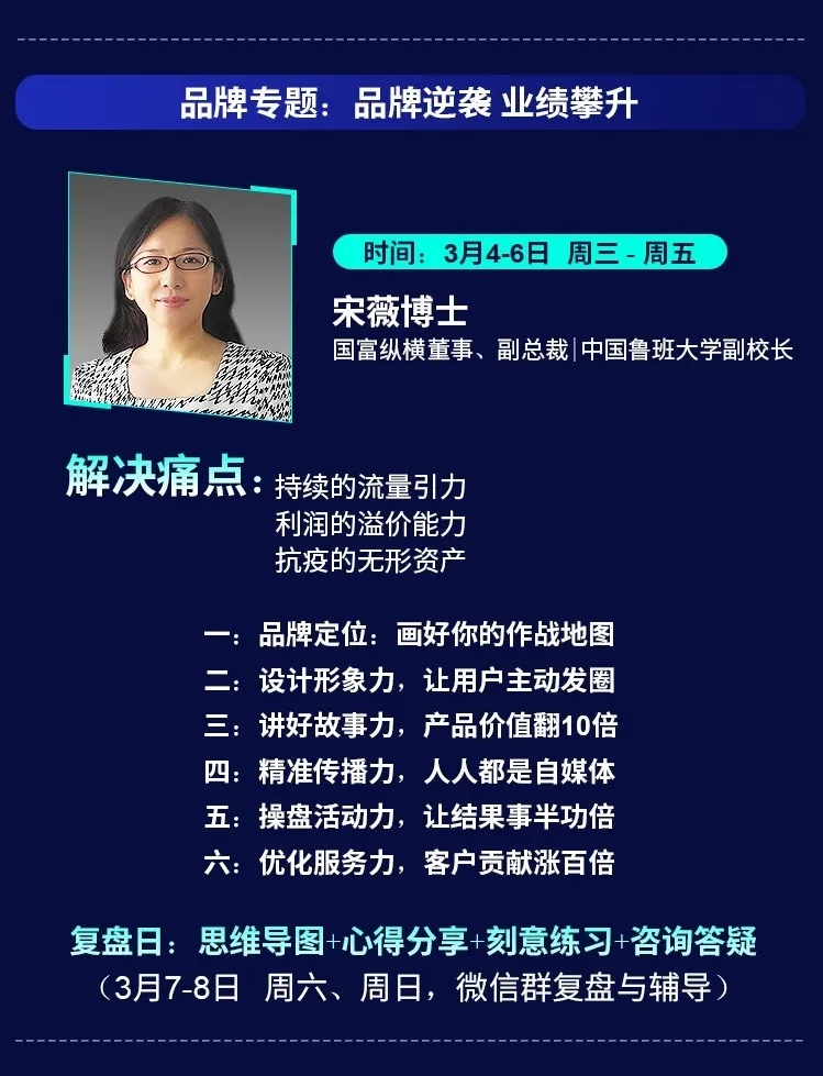 為了幫助家居企業在2020年逆勢突圍,中國魯班大學&國富縱橫重磅推出年度大課——《國富商道》,這是一堂2020家居建材老板必上的增長課,專門針對經銷商老板、中高管和生產企業老板、中高管的專屬課程。自3月2日起至3月22日,中國魯班大學&國富縱橫將通過21天的直播大課為您帶來大變局中的增長戰略,品牌逆勢的運營之道、營銷模式的突破之道、組織強大的鐵軍之道、用戶裂變的增長之道、精細管理的經營之道,一切精彩盡在中國大家居教育平臺,敬請期待!